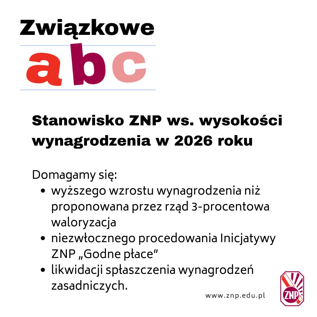 Prezydium Zarządu Głównego Związku Nauczycielstwa Polskiego konsekwentnie domaga się wyższego wzrostu wynagrodzenia zasadniczego nauczycieli w roku 2026 niż zaproponowana przez rząd w ustawie budżetowej 3-procentowa waloryzacja.